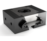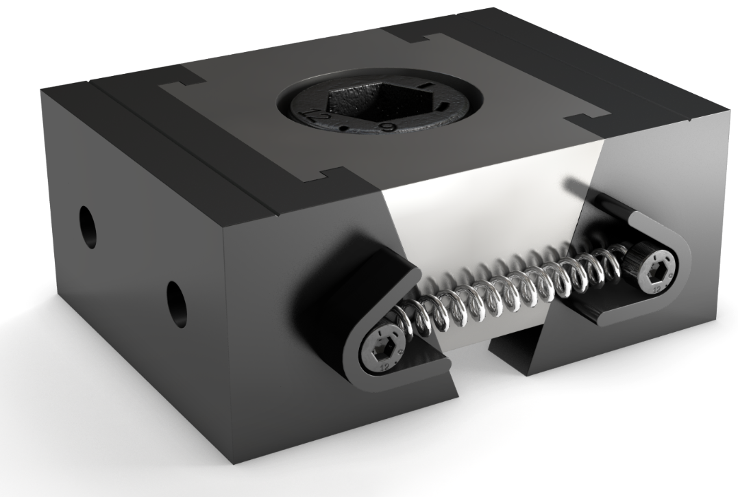 Matalakiinnitin koneistettavilla leuoilla joissa kierrereiät lisäleukoja varten. Suojatut jouset
