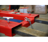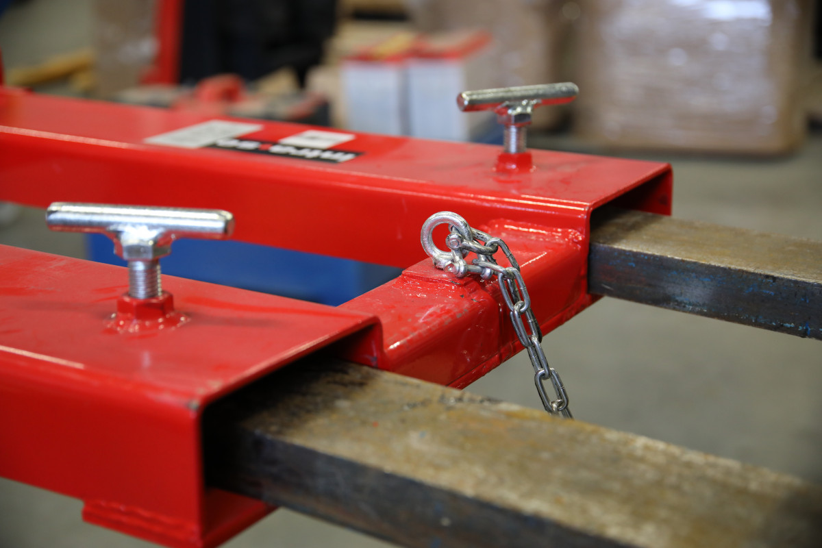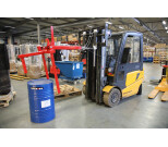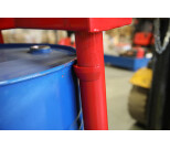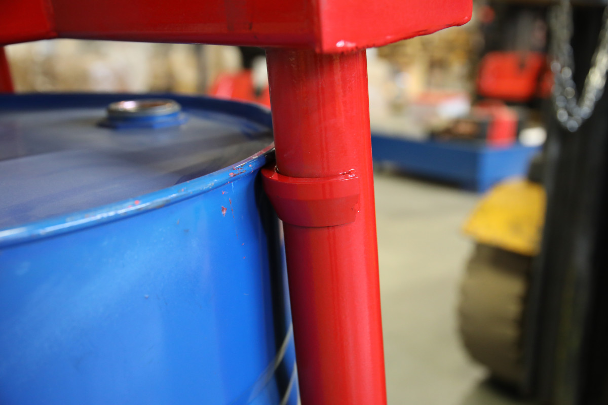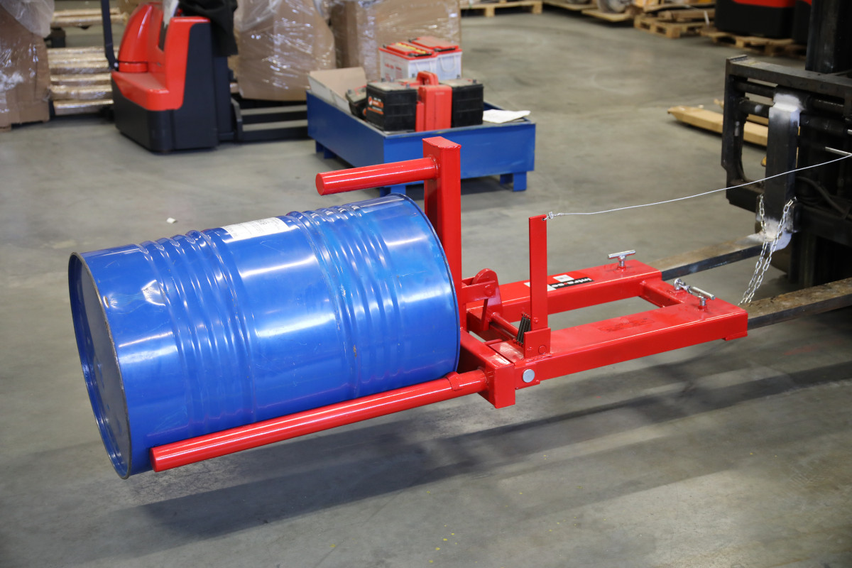 Tynnyrin kääntölaite tarttuu tynnyriin laskemalla haarukoita, kunnes rumpu on vaakasuorassa asennossa, jonka jälkeen tynnyri on valmis kuljetettavaksi hyllyyn.