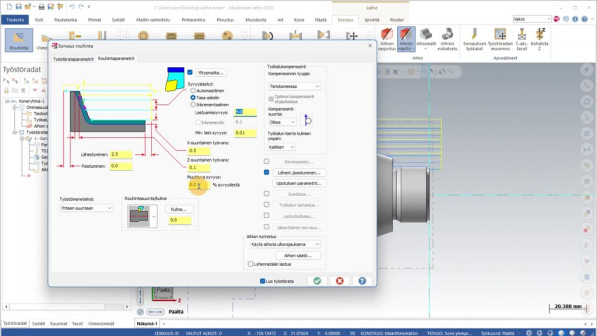 Videolla opit, kuinka lisätä esiviimeistely Mastercamin rouhintasorvaukseen ennen varsinaista viimeistelysorvausta. Esiviimeistelyominaisuutta voidaan myös hyödyntää lopullisena viimeistelyvaiheena, kun viimeistely tehdään samalla rouhintatyökalulla välittömästi rouhintaoperaation jälkeen. Tämä menetelmä parantaa työkappaleen pintalaatua ja säästää aikaa, tehostaen sorvausprosessiasi.