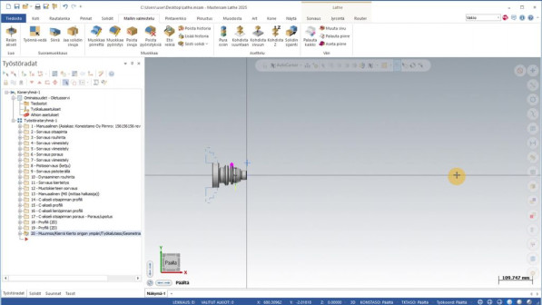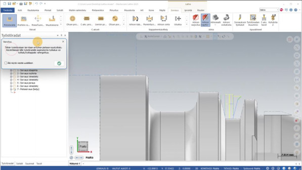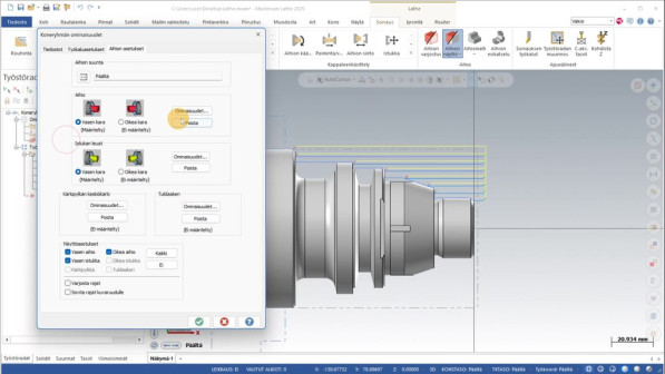 Aihion säätö Mastercamissa mahdollistaa sorvausaihiota koskevien parametrien muokkaamisen ja luo aihion rajauksen, mikä tekee aihion käsittelystä helpompaa kappaleen kääntämisen yhteydessä seuraavaan työvaiheeseen. Tämä ominaisuus parantaa kappaleen hallittavuutta ja optimoi työstöprosessia, mikä helpottaa seuraavien vaihesiirtojen suorittamista.