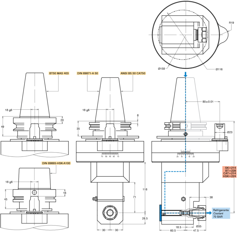 Kompakti kulmapää läpijäähdytyksellä poraukseen, jyrsintään ja kierteitykseen