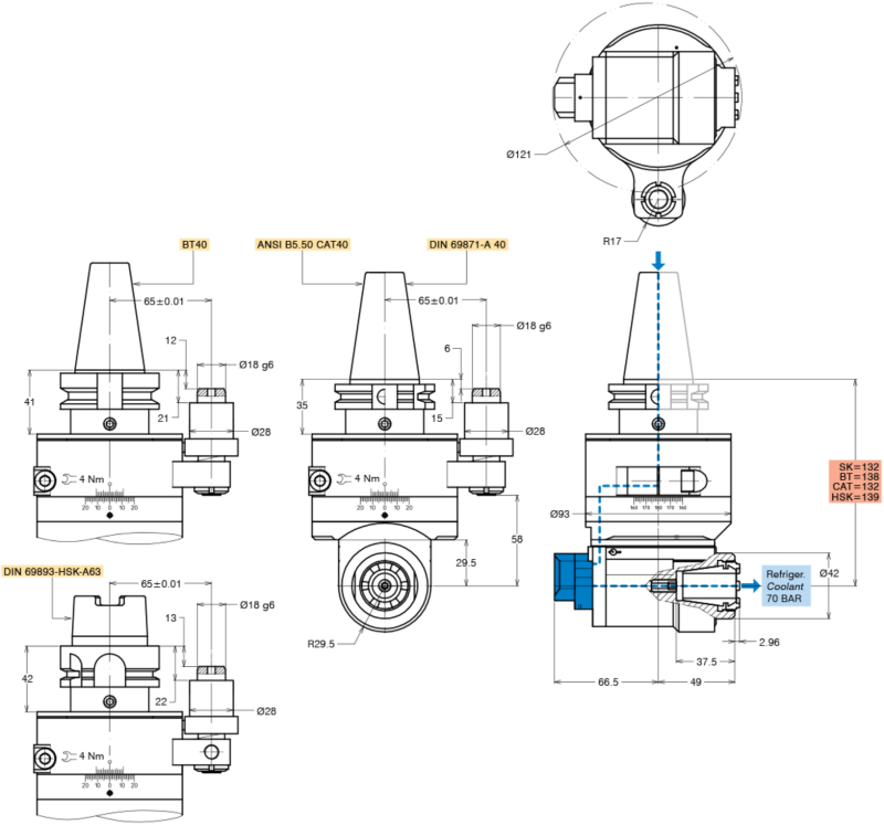 Kompakti kulmapää läpijäähdytyksellä poraukseen, jyrsintään ja kierteitykseen