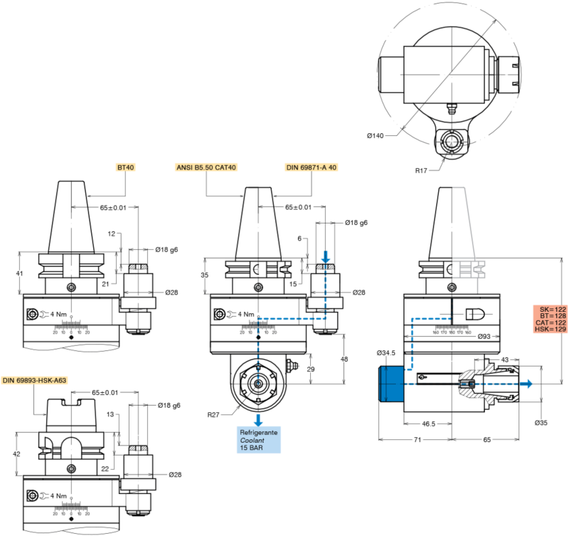 Kompakti kulmapää läpijäähdytyksellä poraukseen, jyrsintään ja kierteitykseen